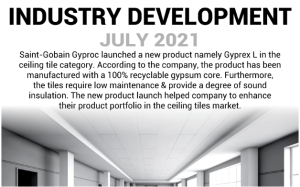 - July 2021 – Saint-Gobain Gyproc launched a new product namely Gyprex L in the ceiling tile category. According to the company, the product has been manufactured with a 100% recyclable gypsum core. Furthermore, the tiles require low maintenance and provide a degree of sound insulation. The new product launch helped company to enhance their product portfolio in the ceiling tiles market.