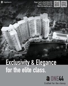 - ONE44, Jagatpura, Jaipur: Elite homes including 3 BHK, 4 BHK, 4 BHK duplex, and 5 BHK duplex units with luxurious interiors.
