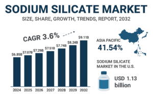 The sodium silicate market is experiencing steady growth across industries due to its versatile chemical properties and wide range of applications. Known commonly as water glass or liquid glass, sodium silicate is used in detergents, adhesives, construction materials, coatings, pulp & paper, water treatment, and several specialized industrial processes. As global industries shift toward sustainable, efficient, and high-performance materials, sodium silicate continues to gain importance. This blog explores the market size, growth factors, key applications, and major trends shaping the sodium silicate market through 2032.